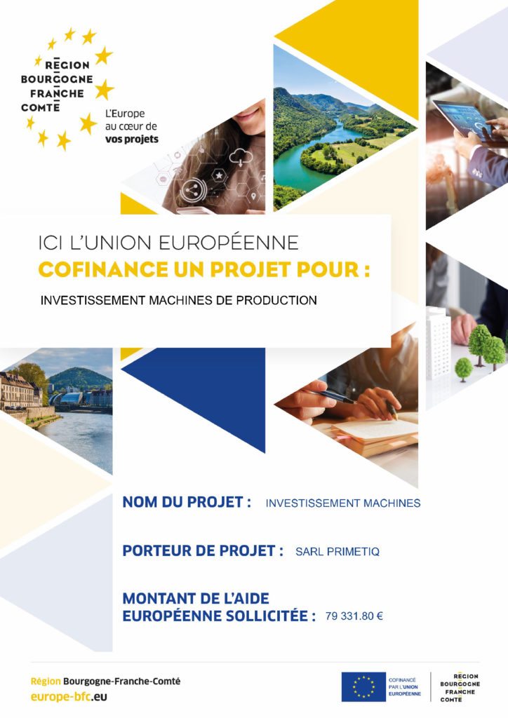 Dans le cadre de notre projet de modernisation, nous avons sollicité une subvention fédérale auprès de l’Union européenne afin de soutenir le financement de nouvelles machines. Cette demande a été acceptée, et l’aide accordée nous permet d’investir dans des équipements plus performants, contribuant ainsi au développement et à la compétitivité de notre activité.